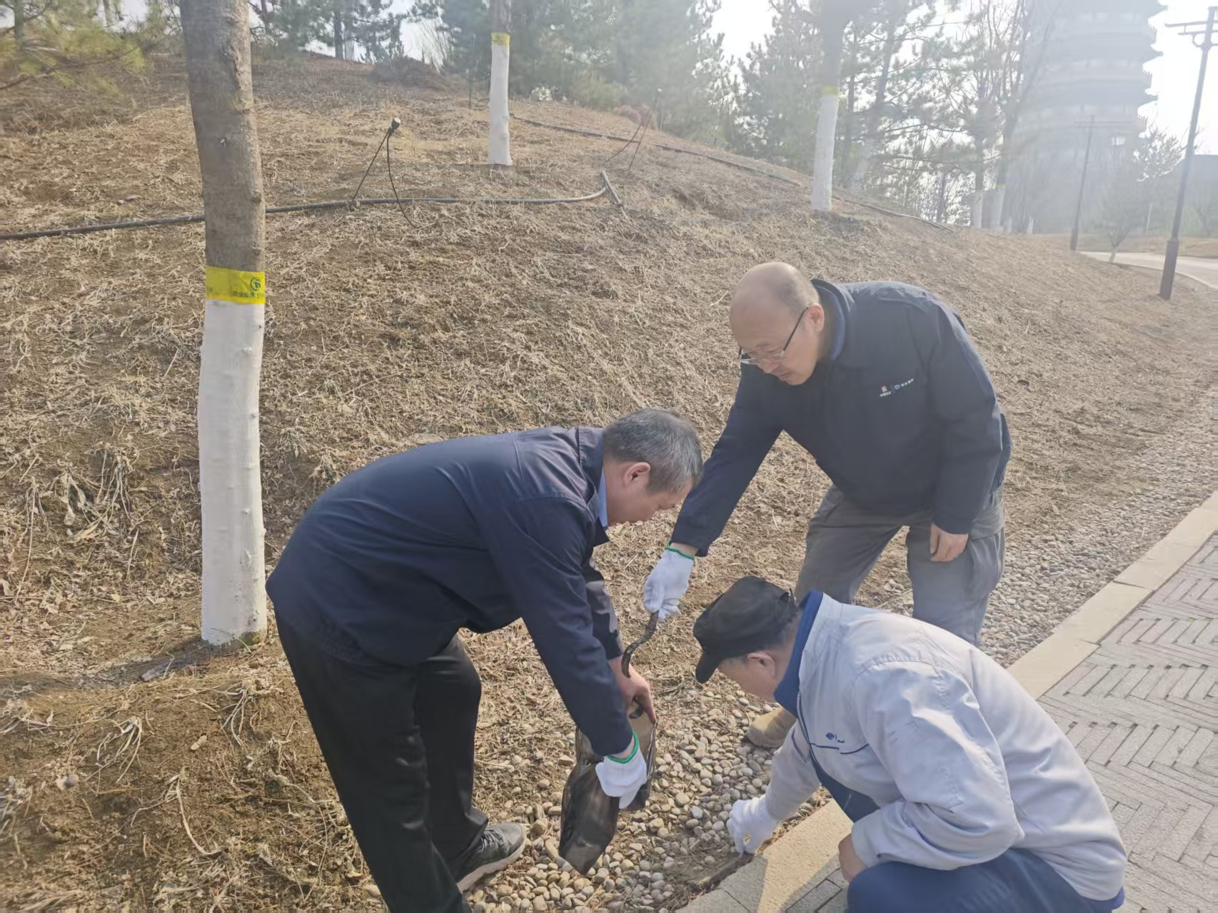 春風輕撫悅容公園的湖面,泛起粼粼細碎金光。活動現場,平日里手持圖紙與儀器的工程師們,此刻俯身于草坪與步道之間,認真撿拾散落的水瓶、紙屑,并細心分類裝袋。盡管手套沾滿塵土,但他們的笑容卻如旭日般燦爛。從建筑工地的“質量把關人”,轉變為城市環境的“清潔守護者”,遠達國際的員工們用實際行動詮釋了責任與擔當的深刻內涵。